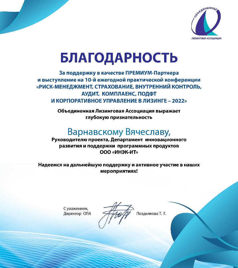 От Компании ИНЭК-ИТ выступил руководитель проекта Варнавский Вячеслав с докладом об актуальной в наше время разработке, когда ожидание отчетности для принятия решения и оперативного реагирования на изменения в финансовом положении контрагентов бывает затруднительно, -